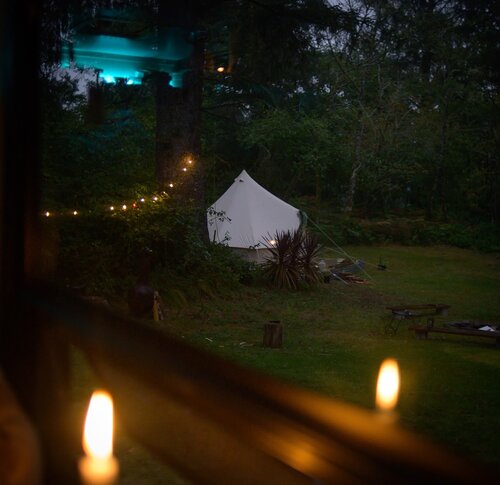 Down towards the lake we built a pallet board platform and set up a 16’ canvas Bell Stout Tent for guests and office space.