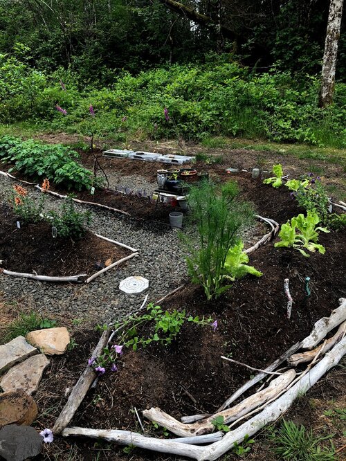 After tearing up blackberry vines, the garden project fed more wildlife than humans. I experimented with herbs, veg and local wild flowers. I wanted the garden to be wild too.