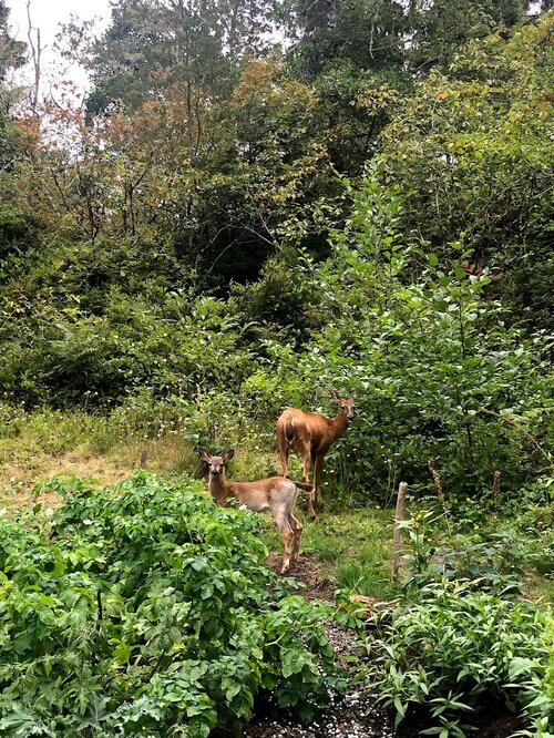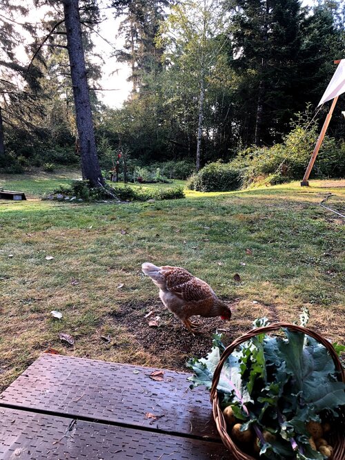 Our sweet Finley, Kidden, Chimken (the chicken who appeared from the woods and never left), and the occasional deer and bear.