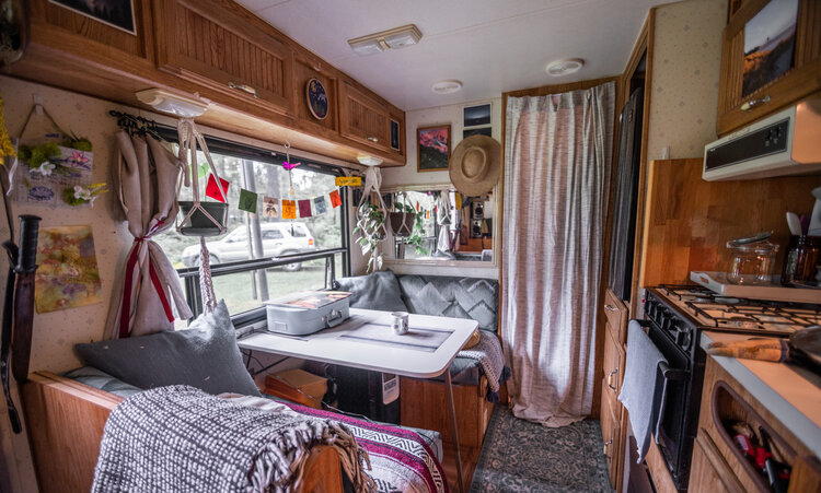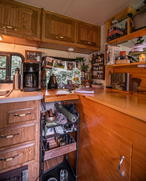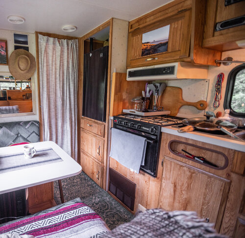 a couple before photos of the Nomad before a small remodel to expand cooking, storage and working space.